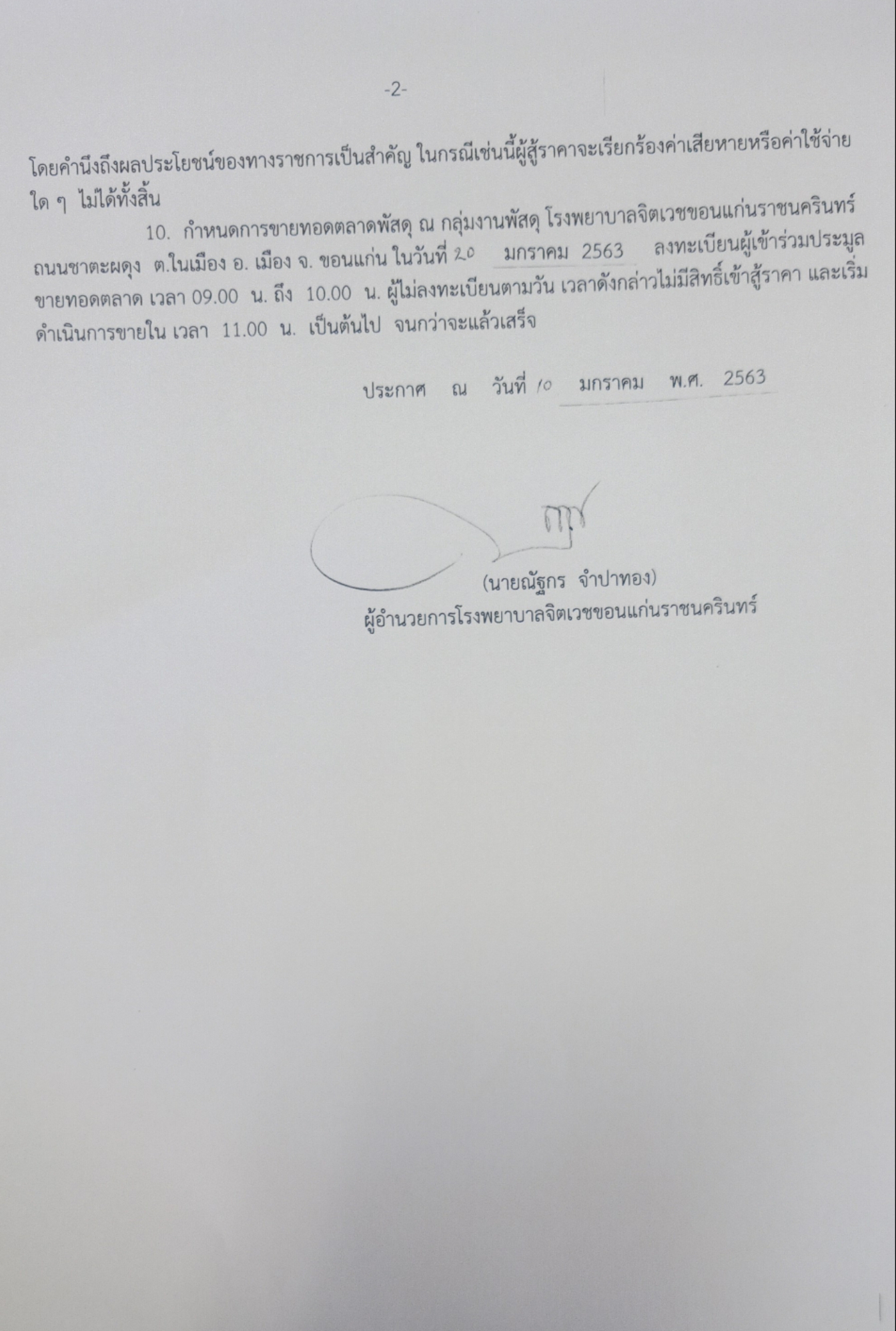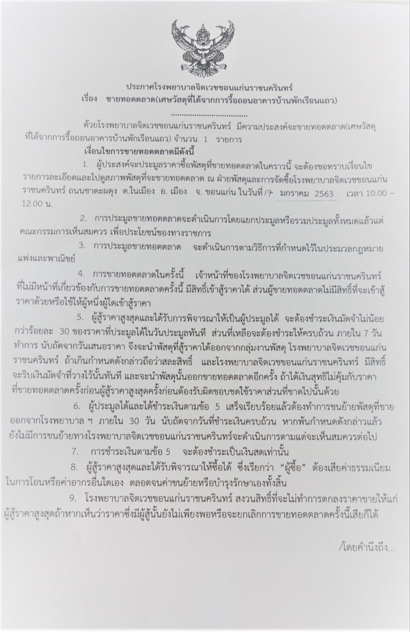 ประกาศขายทอดตลาด (เศษวัสดุที่ได้จากการรื้อถอนอาคารบ้านพักเรือนแถว)
