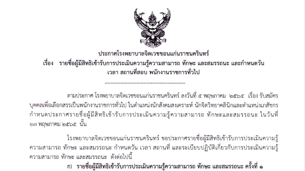 ประกาศรายชื่อผู้มีสิทธิสอบตำแหน่งนักสังคมสงเคราะห์ นักจิตวิทยาคลินิก เภสัชกร