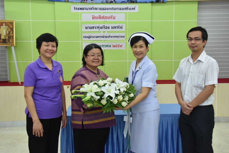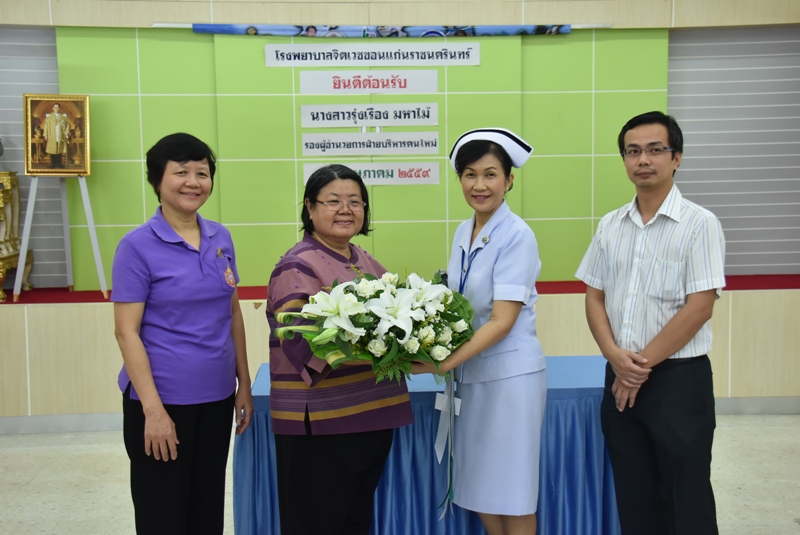เมื่อวันที่ 8 พฤษภาคม 2559 ที่ผ่าน บุคลากรโรงพยาบาลจิตเวชขอนแก่นราชนครินทร์ ได้เข้าร่วมต้อนรับและเเสฃดงความยินดี กับ นางสาวรุ่งเรื่อง มหาไม้ ในโอกาศที่เข้ามารับตำแหน่ง รองผู้อำนวยการฝ่ายบริหาร โรงพยาบาลจิตเวชขอนแก่นราชนครินทร์ ซึ่งในวันดังกล่าวนี้ คณะ กรรมการบริการโรงพยาาบาลได้กล่าวแสดงควารมยินดีและกล่าวต้อนรับ พร้อมกับมอบช่อดอกไม้ จากนั้น ท่านรองผู้อำนวยการฝ่ายบริหารคนใหม่ได้พบปะพูดคุยกับบุคลากรและ ร่วมสักการะสิ่งศักดิ์สิ่งประจำโรงพยาบาล เพื่อเป็นศิริมงคลต่อตัวเองและในการปฏิบัติราชการในโรงพยาบาลจิตเวชขอนแก่นราชนครินทร์